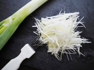 確かに、説得力のある刃…。これなら、細かな白髪ネギが出来上がりそうで、期待が高まります。それでは早速、「ネギカッター」を使って、白髪ネギ作りに挑戦していきましょう。
