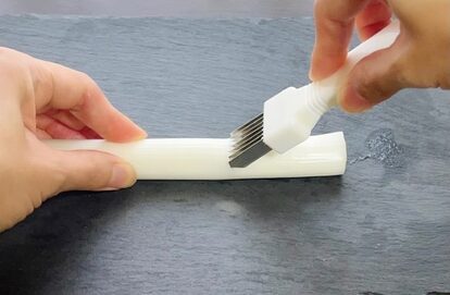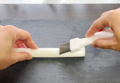 独自に計測してみたところ、刃の長さは約3cmほど。それを、ネギの表面に差し込んで、切っていくだけで、簡単に白髪ネギを作ることができるそうなのです。