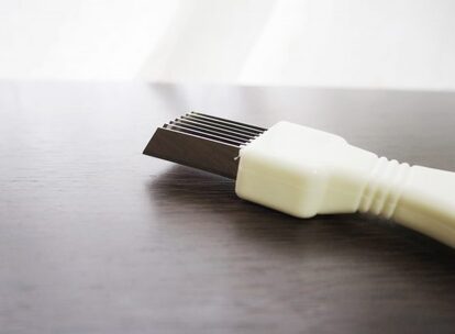 手にフィットする長いハンドルの先端に、7枚の刃がついています。